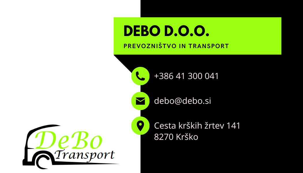 DeBo d.o.o. smo podjetje z bogatimi izkušnjami na področju avtoprevozništva. Z visoko mero zanesljivosti, strokovnosti in upoštevanjem dogovorov pridobivamo izkušnje in zadovoljne stranke tako na domačem kot na mednarodnem trgu. Pokrivamo celotno Evropo.