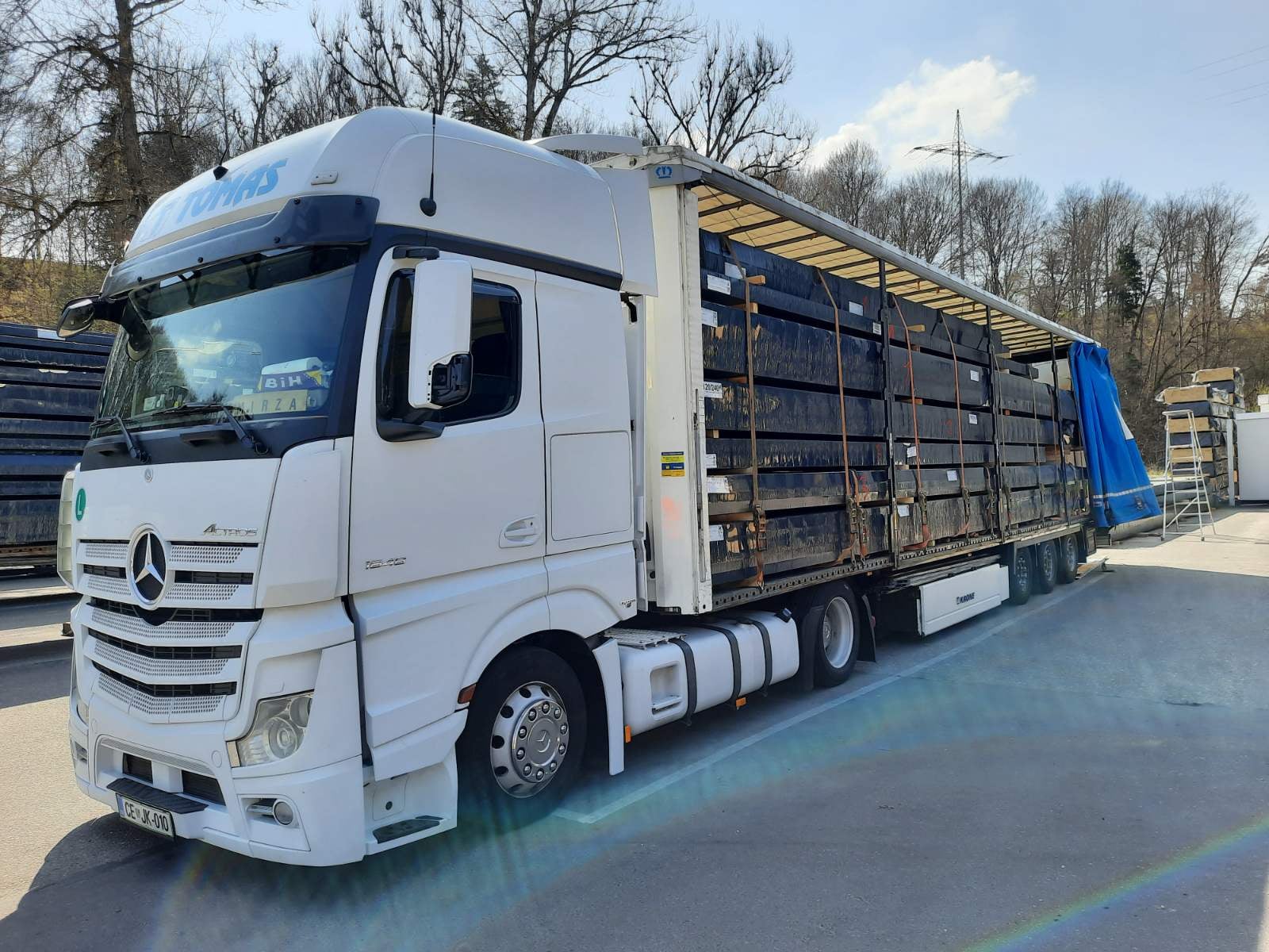 Prevoze opravljamo s tehnično brezhibnimi vozili znamke Mercedes-Benz, ki ustrezajo vsem strogim okoljskim standardom, brezhibnimi priklopniki znamke Krone in strokovno usposobljenimi vozniki.
